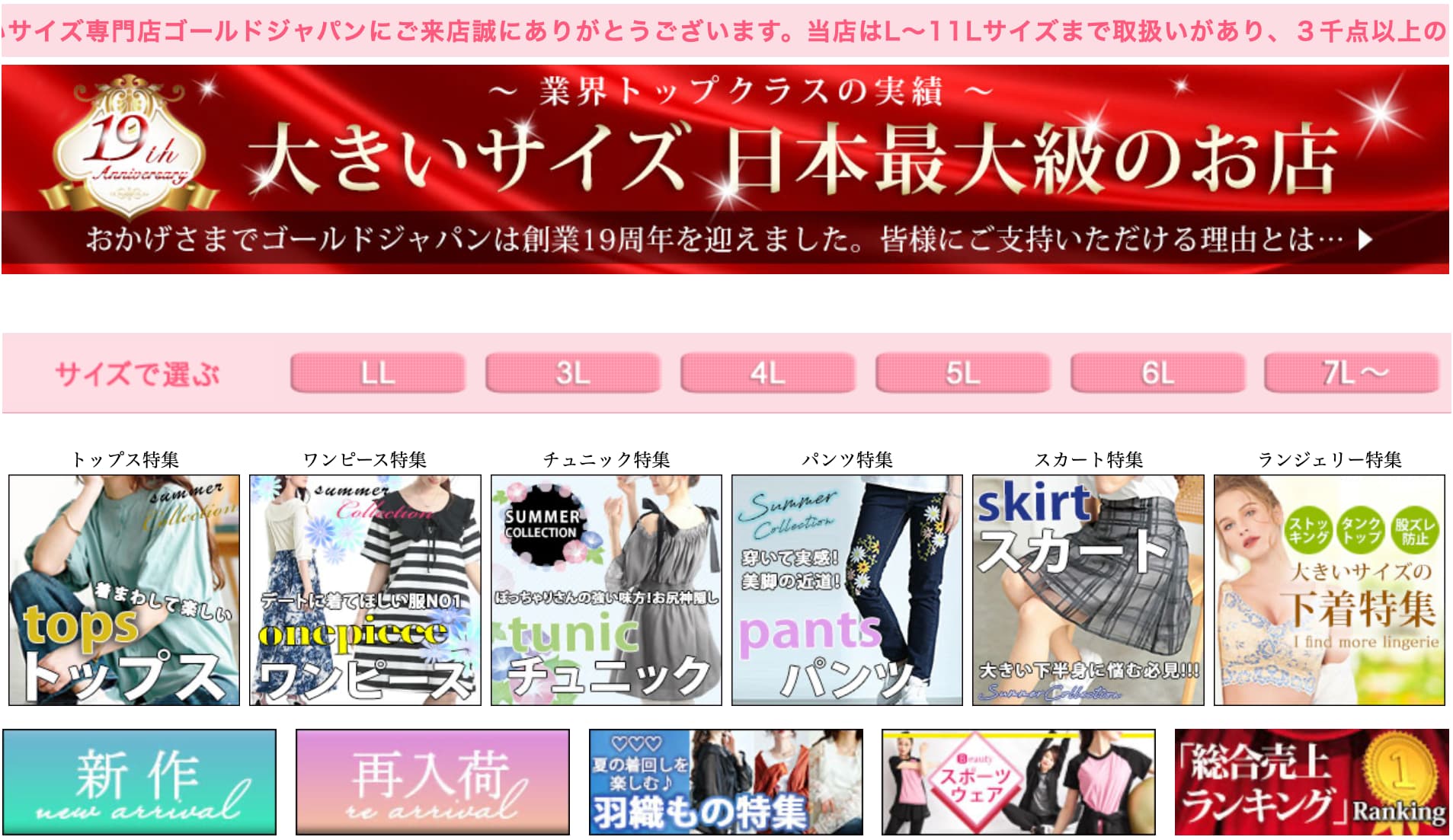 L〜11Lサイズまである大きいサイズ専門店。