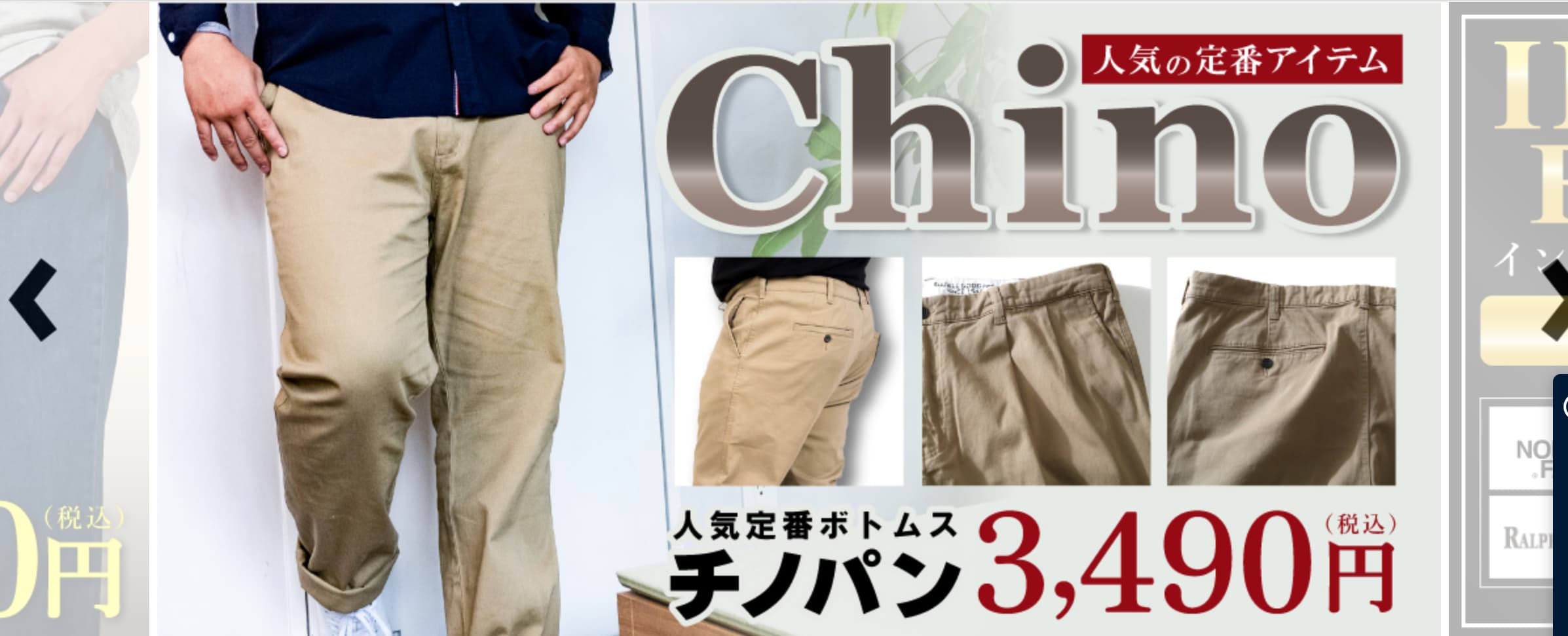 トップス、ボトムス、インナー、シャツ、スーツ、フォーマルウェア、アウター、ジャケット、パーカー、下着、スポーツウェア、帽子、小物なども充実。