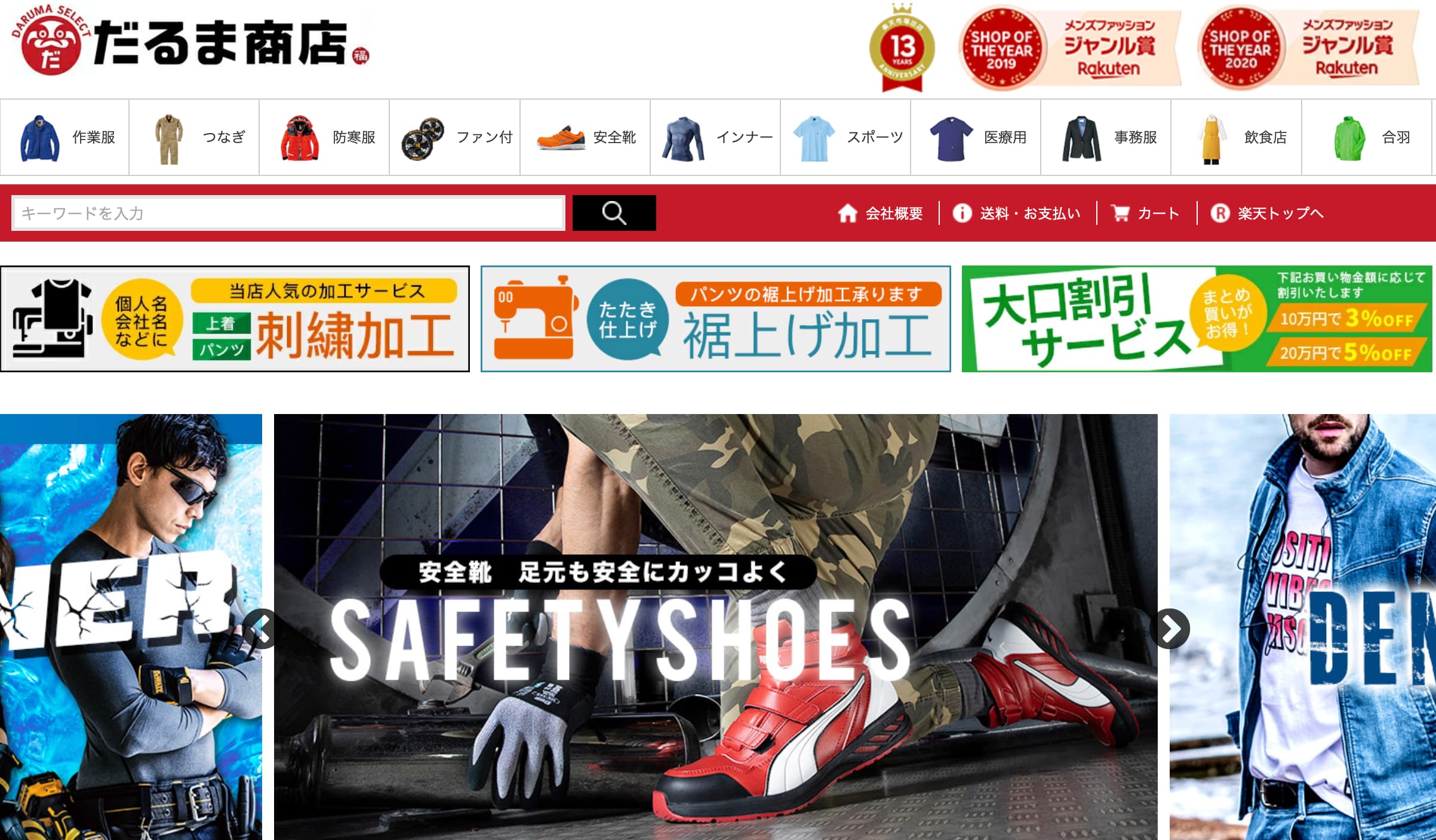 作業服・制服・医療用白衣・ユニフォーム・安全靴などを取り扱っています。